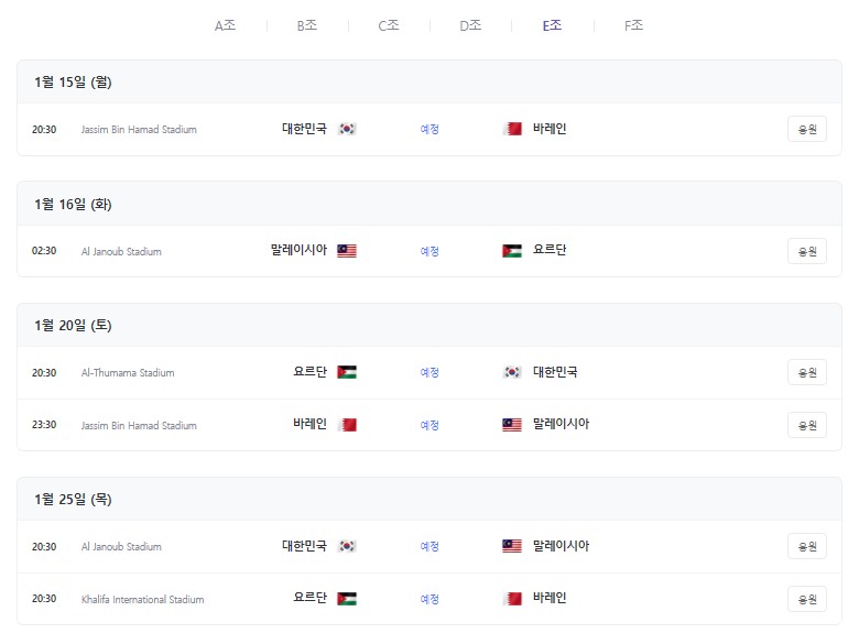 카테고리 없음 2023 카타르 아시안컵 한국 경기 일정표 by cheers 2024. 1. 14. 반응형 반응형 공유하기 게시글 관리 Life goes On! 저작자표시 (새창열림)